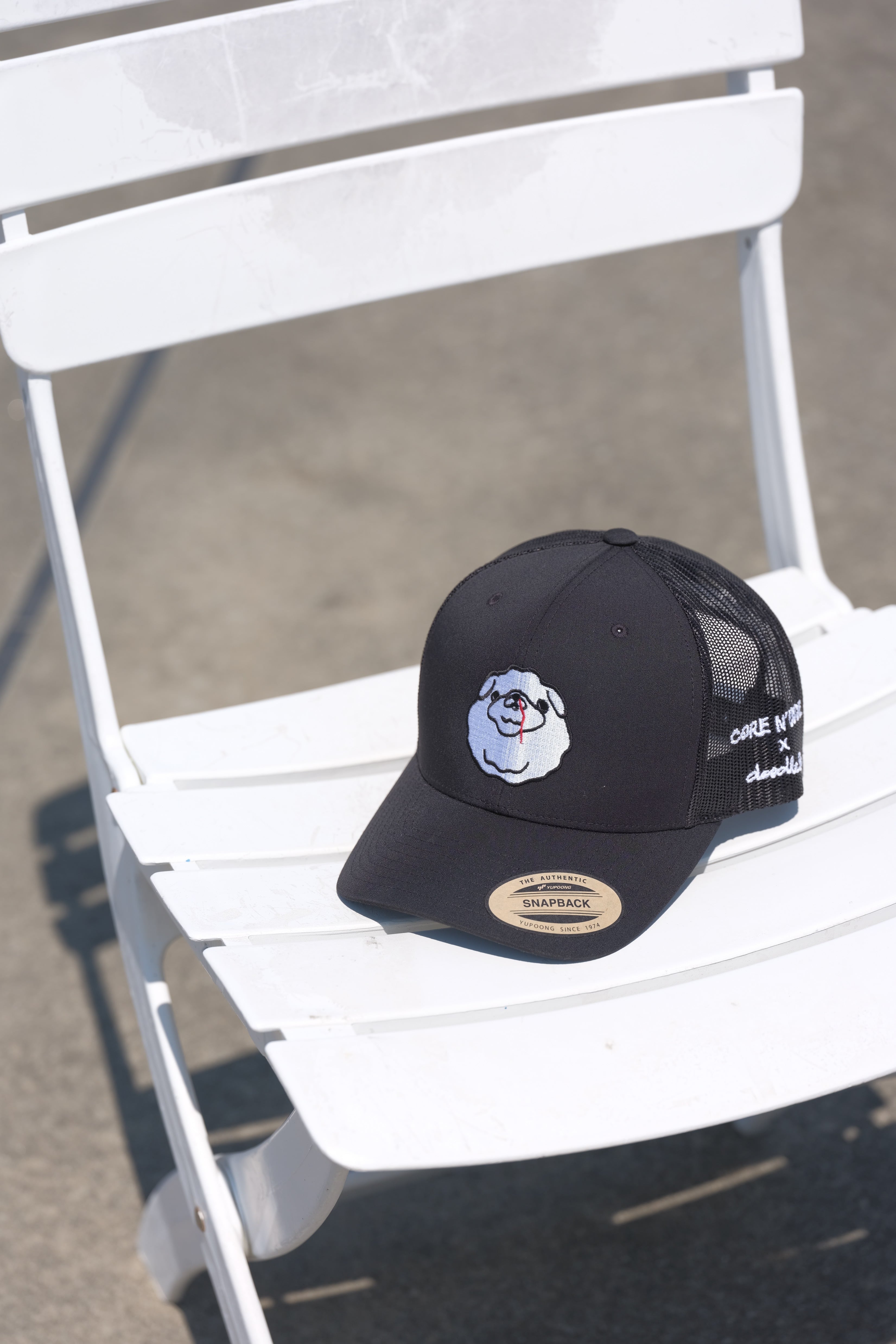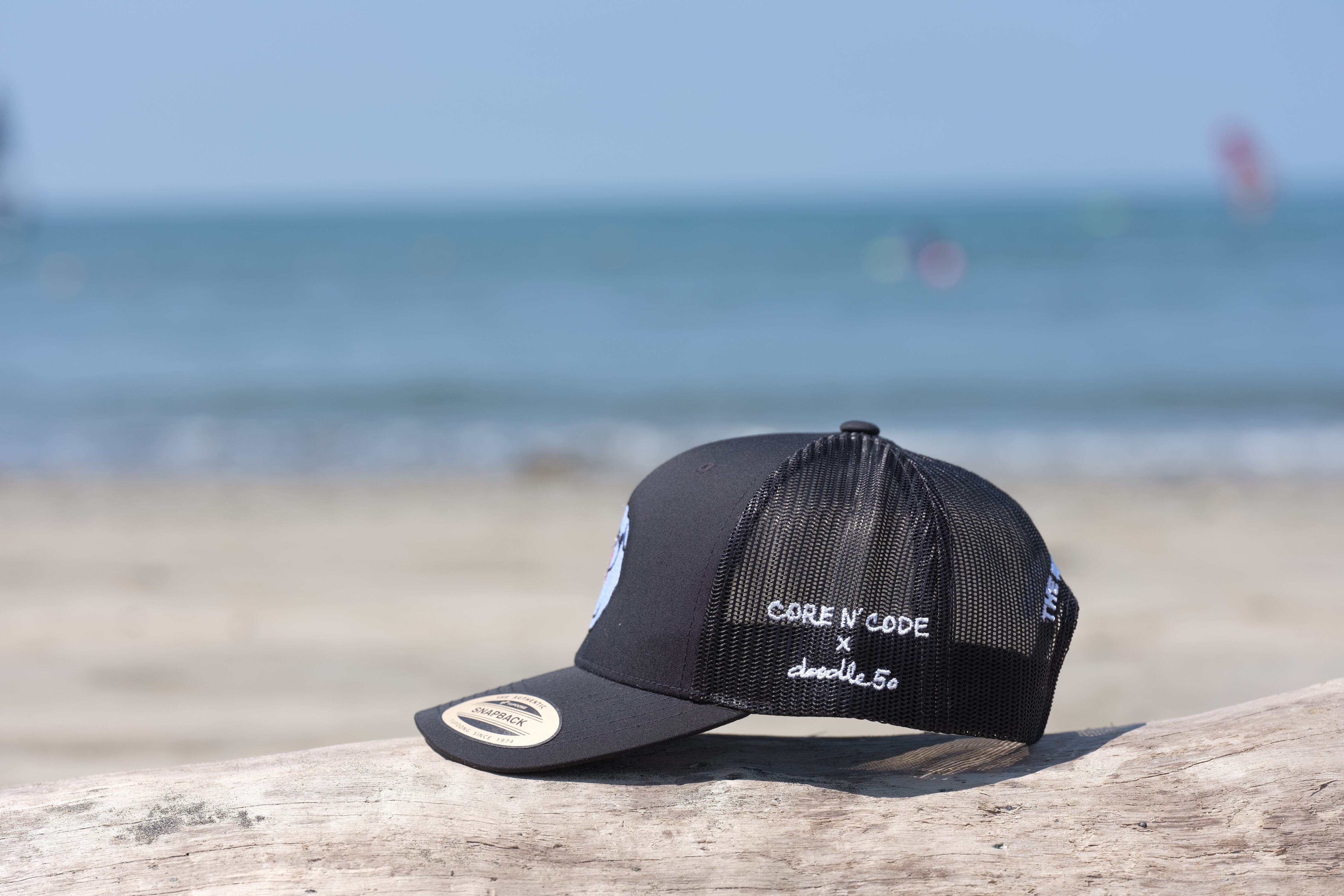 このキャップのデザインを手掛けたのは、ヴィンテージミシンでアートフルなデザインを手掛け、数々の海外アパレルCEOからオファーを受けるdoodle50。即完売する人気あるアーティストです。